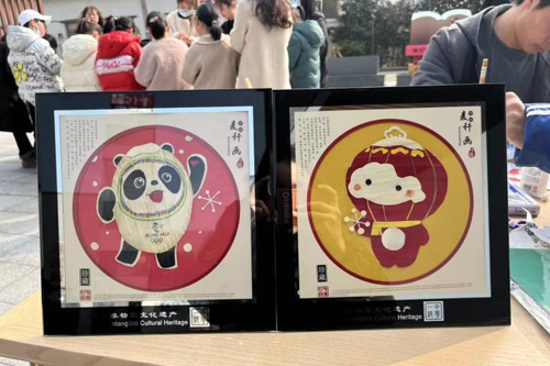 麦秆作画,点草成金。麦秆画非遗传承人卢建松老师正带领他的四名学员,向大家展示手艺,一度成为现场最“吸粉”的人。“其实麦秆画有点儿像剪贴画,我们事先要把麦秆在水里泡软,用镊子分开,再熨平,染上颜色之后,粘贴在拷贝纸上定型,最后制作成各种各样的形状,拼贴成一个个图案……”卢建松还是周巷镇天元小学的老师,他一边介绍,一边手中的镊子不停。很快,一个“雪容融”雏形初显,一条条麦秆也在他手底下变废为宝。周巷镇天元小学六年级的学生茅梦伊学习麦秆画制作2年多了,从一开始的好奇到如今的“沉迷”,她说:“看到一幅幅好看的麦秆画在自己手里诞生,太有成就感啦!制作过程也让人沉浸其中,特别享受。”