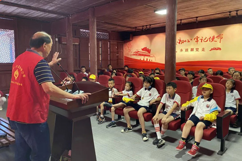 “追寻红色记忆”活动——祭扫烈士陵园、参观中共浙东区委成立处宓大昌、听红色故事,让孩子们实地走进红色基地。在参观宓大昌纪念馆时,孩子们围坐在会议厅,听市关工委宣讲员洪银国爷爷讲红色故事。洪爷爷讲述了最小的革命烈士小金子的抗日故事,面对残暴的日军侵略,临刑前年仅四岁的小金子毫不惧色,高呼妈妈我不害怕。孩子们目不转睛,听得认真,对小金子肃然起敬,最后孩子们也齐声高呼:“请党放心,强国有我”,声音虽稚嫩却铿锵有力。