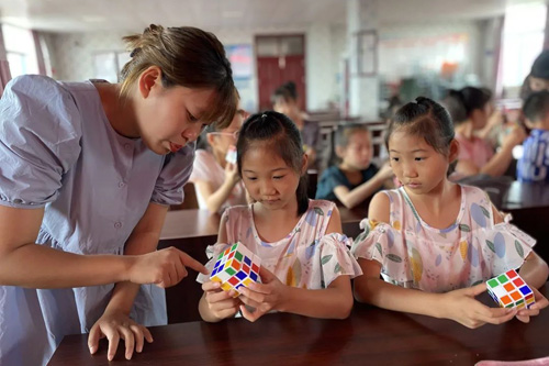 “关爱角落天使”活动——在每日课程开展期间,时刻关注孩子们心理情况,开展情绪、意志等方面心理辅导,引导孩子管理情绪、自我激励,塑造健康阳光心理。在教室一角,总能看到2个身影,一个是学校负责人林丽华,另一个则是小张慈。张慈由于自身家庭环境,他比同龄的孩子更加敏感,极易暴躁,林丽华总是充当暖心大妈妈开导张慈。志愿者们也是给予了他更多的帮助与关爱,“今天的作业完成了吗?”,“你有不会做的题吗?”此类问候常常在假期学校响起。恰逢台风“烟花”过境,假期学校暂时停课,但大家仍不放心张慈的饮食起居,把他接了过来,督促他完成作业,为他准备可口的饭菜。张慈妈妈激动地说:“谢谢你们,有你们真好。”